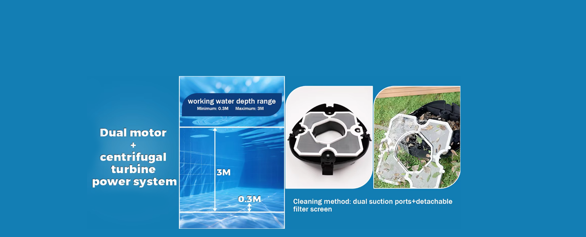 | Tipos de piscinas aplicables: | Mesa Sui para piscinas elevadas y enterradas de fondo plano | Velocidad de movimiento: | 30W, con control de potencia constante |