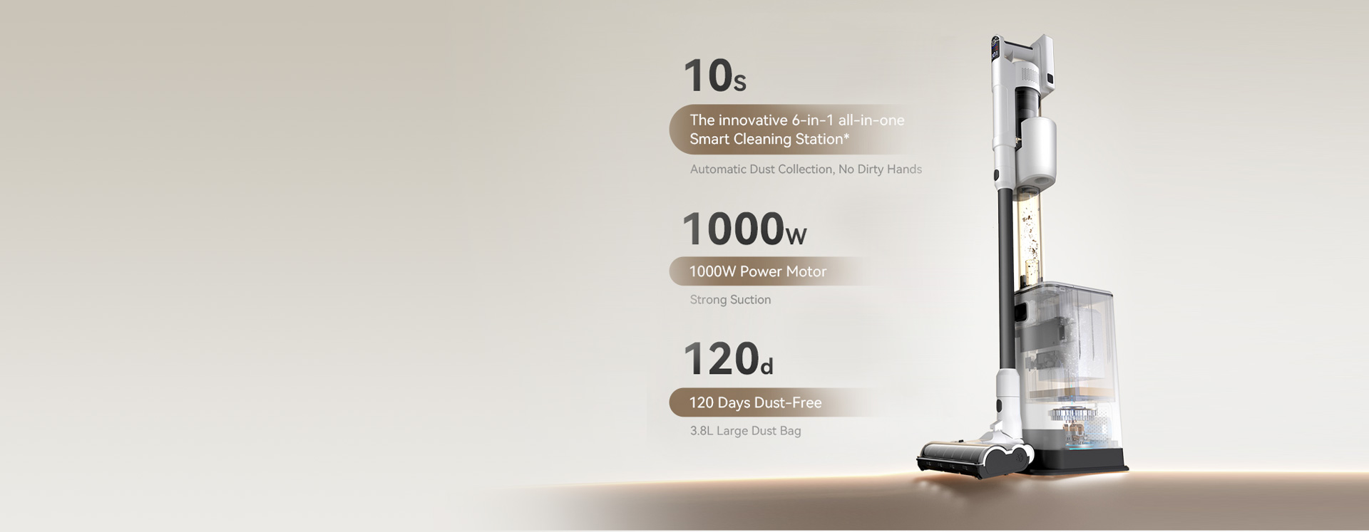 La innovadora estación de limpieza inteligente todo en uno 6 en 1 resuelve seis problemas principales en una sola parada: recolección de polvo, filtración, carga, protección antibacteriana, apariencia y almacenamiento.