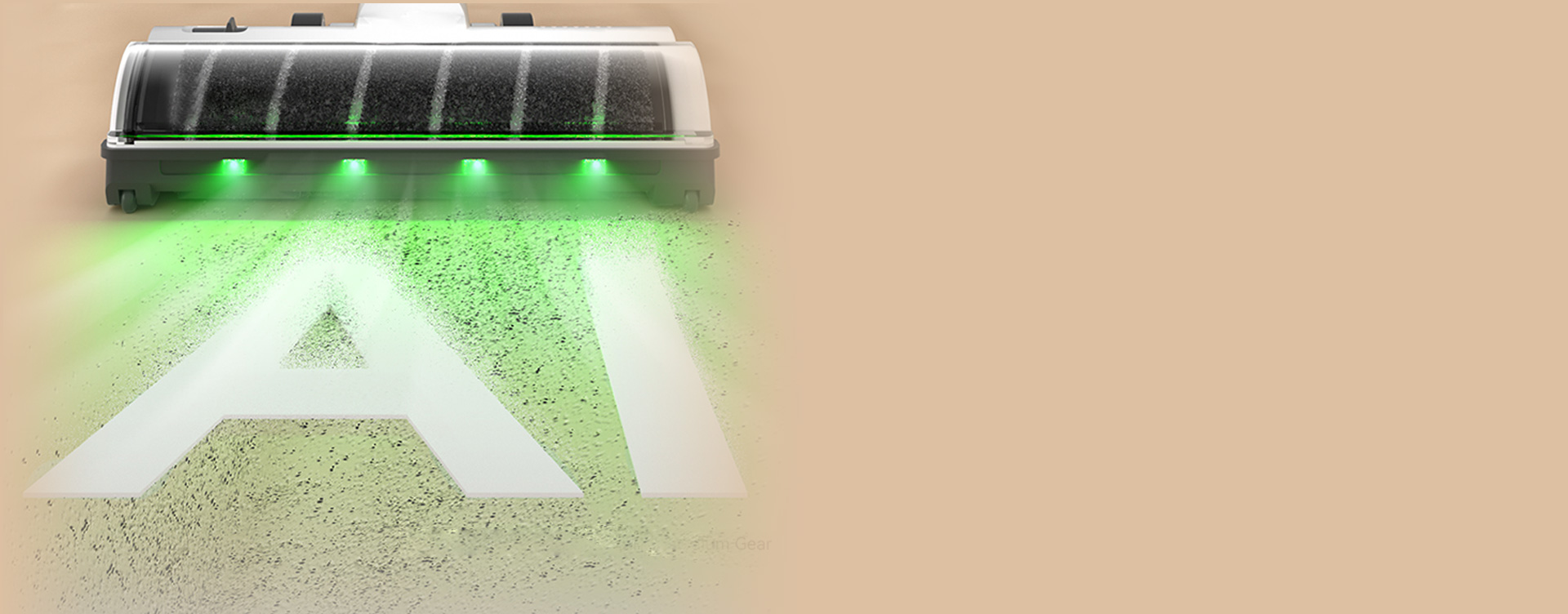 La luz verde de gran angular mejora la visibilidad del polvo, brinda una vista más clara de la eliminación del polvo, ajusta automáticamente la fuerza de succión según el nivel de suciedad y logra una eliminación completa del polvo para pisos más limpios.